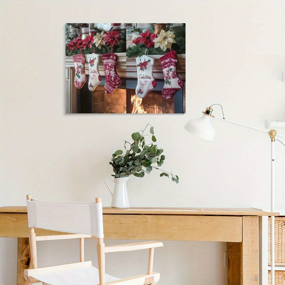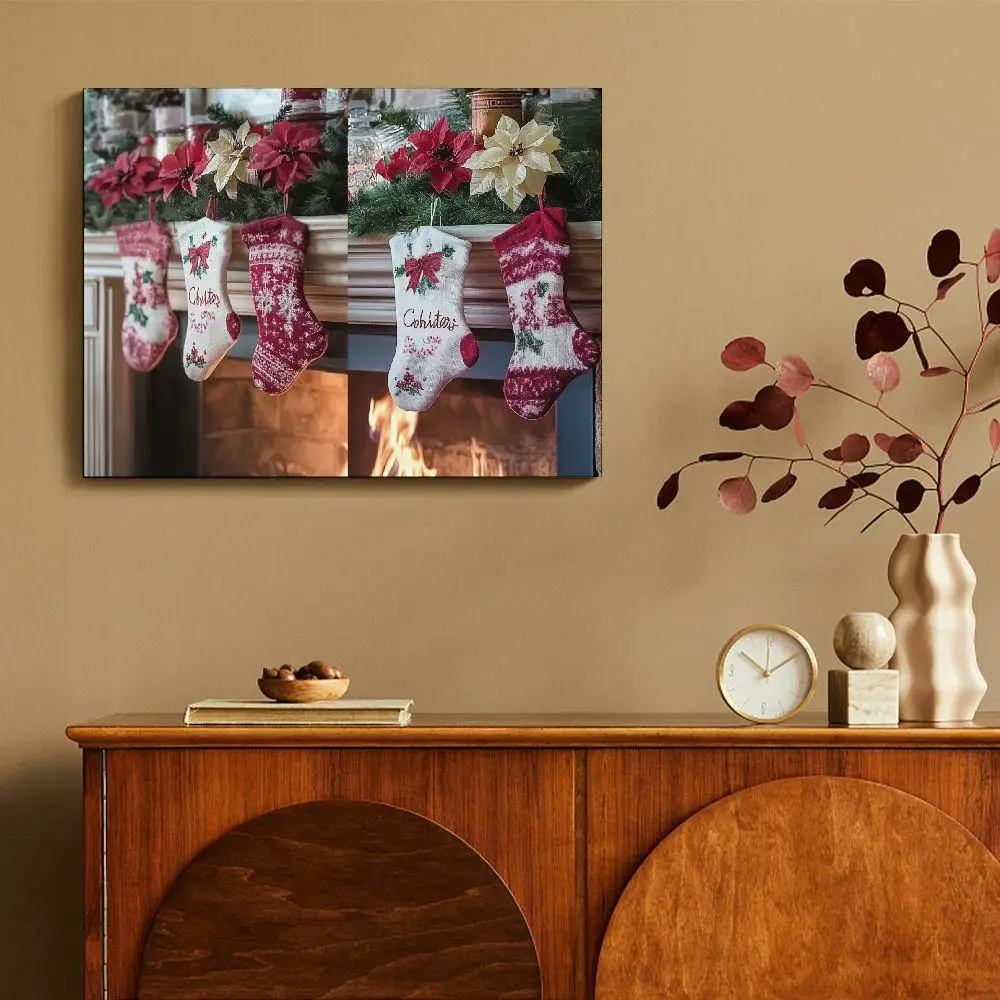 Christmas Decoration Canvas Painting Christmas Stockings Christmas Tree Heater Living Room Bedroom Dining Room Art Decoration