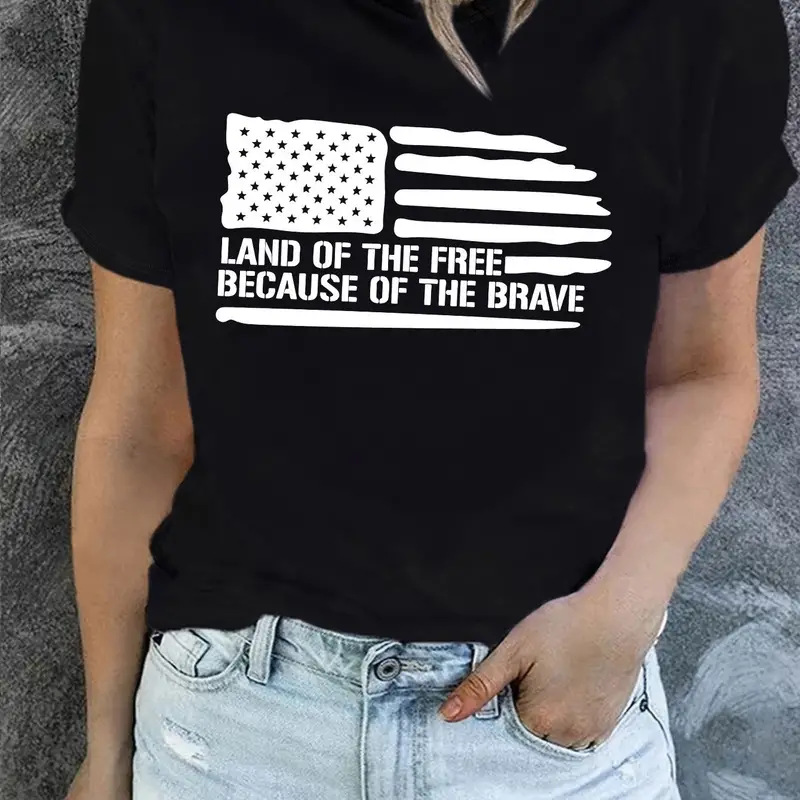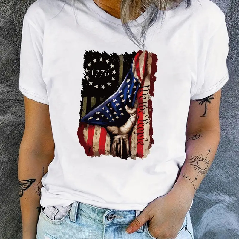 Independence Day Flag Print T Shirt Short Sleeve