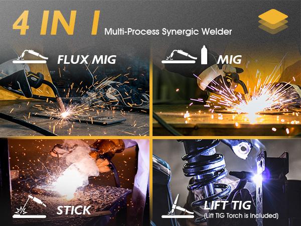 TOOLIOM 4 in 1 MIG Welder 180A Gas MIG/Flux MIG/Stick/Lift TIG Multiprocess Welding Machine 110V/220V Welder with Lift TIG Torch